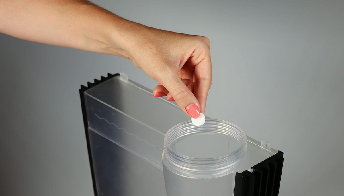 Just add one tablet to the water tank or water container of your humidifier or air washer every two weeks and fill up with water. And that’s it: the hygiene tab will then dissolve without trace and enrich the indoor air with hygienically clean water.